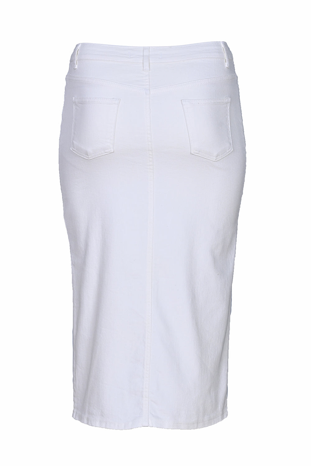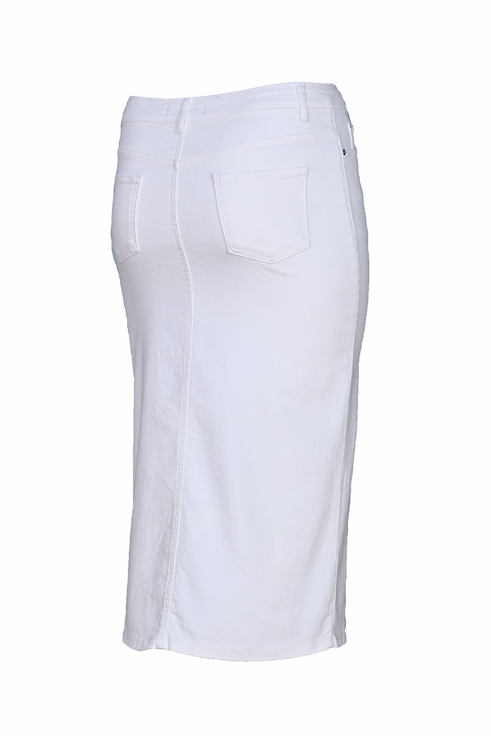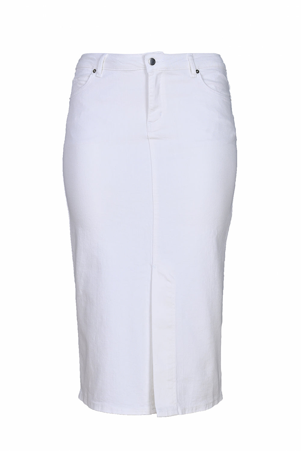 • Dieser stilvolle Jeansrock in Midilänge ist ein echtes Figurwunder! Die feste, formende Denimqualität sorgt für einen glättenden Effekt und betont die Silhouette auf elegante Weise. Mit klassischem 5-Pocket-Design, hohem Bund und markanter Teilungsnaht vorn – perfekt kombinierbar für City-Looks oder den Alltag.
