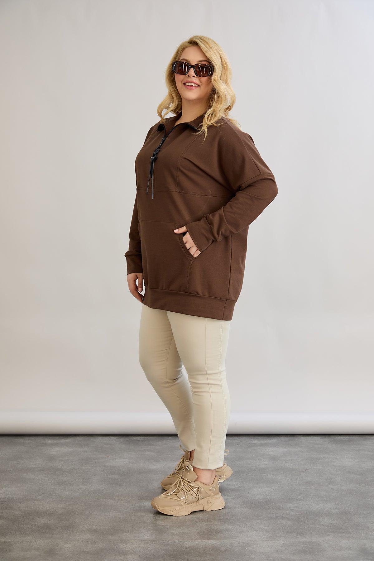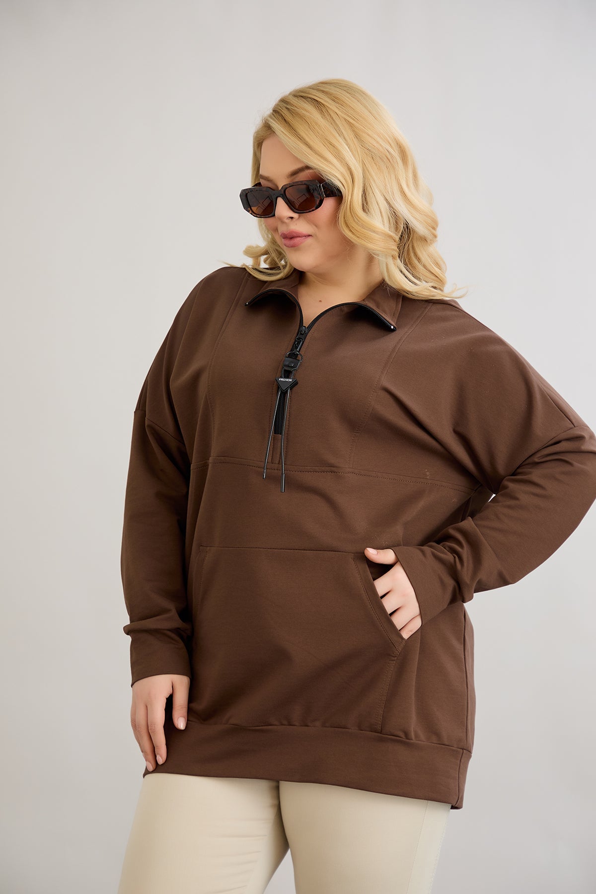 Zip-Hoodie mit dekorativen Nähten - Braun